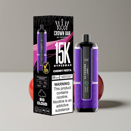 Al Fakher Crown Bar 15K Hypermax Disposable Vape Kit Cireșe Fiesta 15.000 Pufuri 22ml